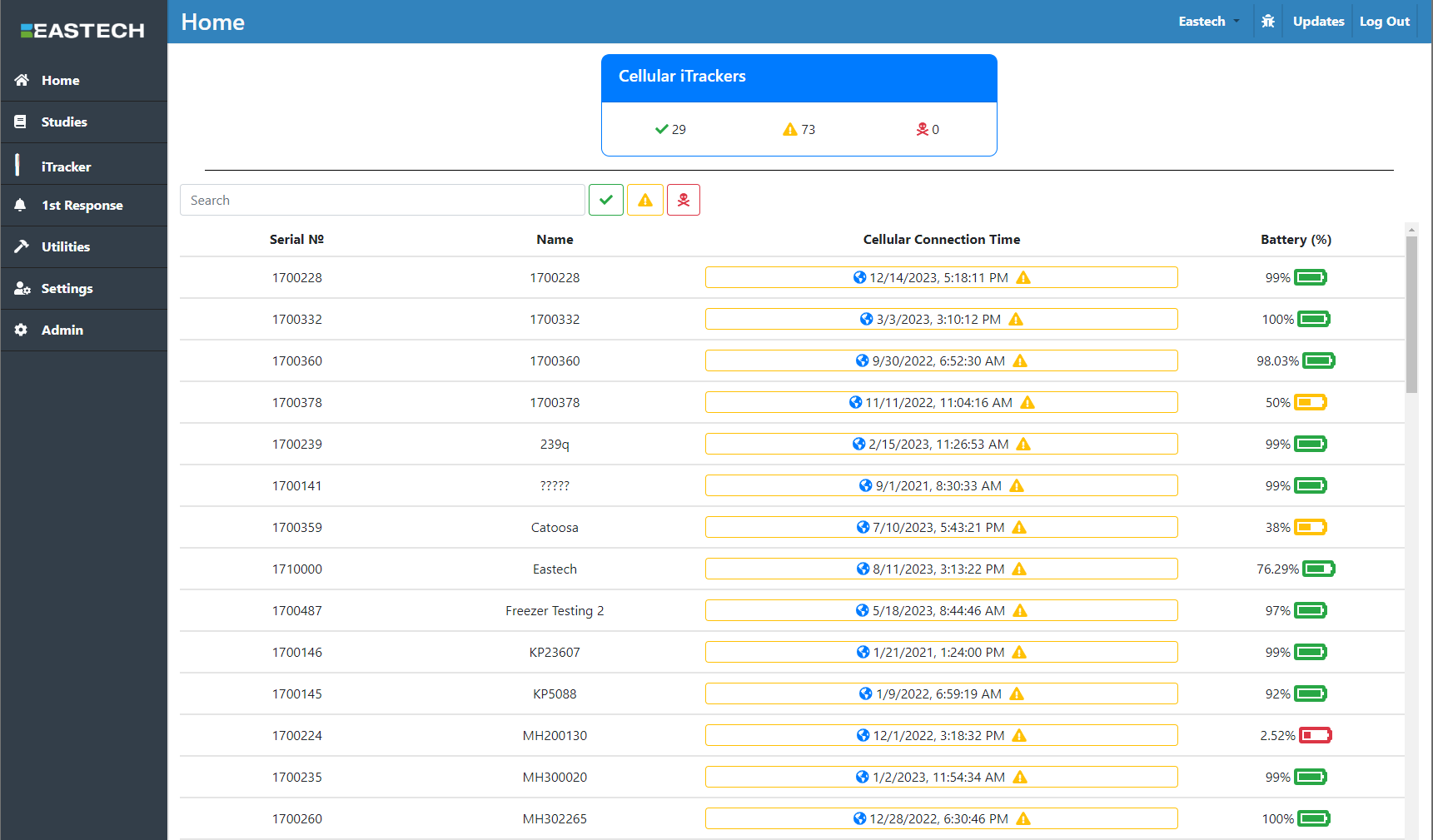 When logging in to the Cloud, you will arrive at the iTracker dashboard. The dashboard provides an overview of the organization’s iTracker Fleet. From here, you will use the Top and Side menu to navigate the Cloud.