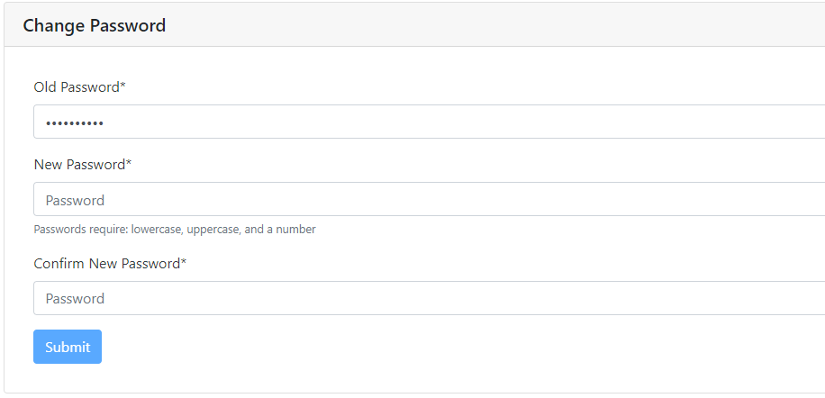 Input your old password and then the new password twice to confirm and then click the Submit button.