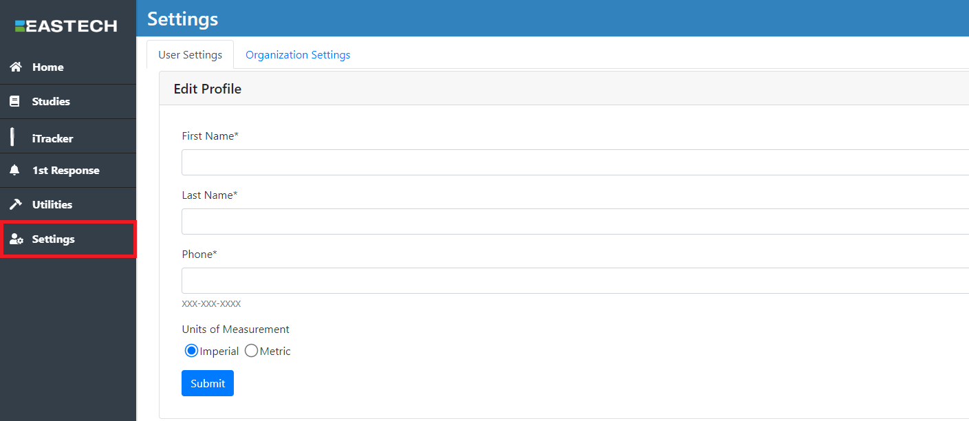 If you need to update your account name, phone number, or units of measurement. You can do this by clicking on Settings on the Cloud menu.