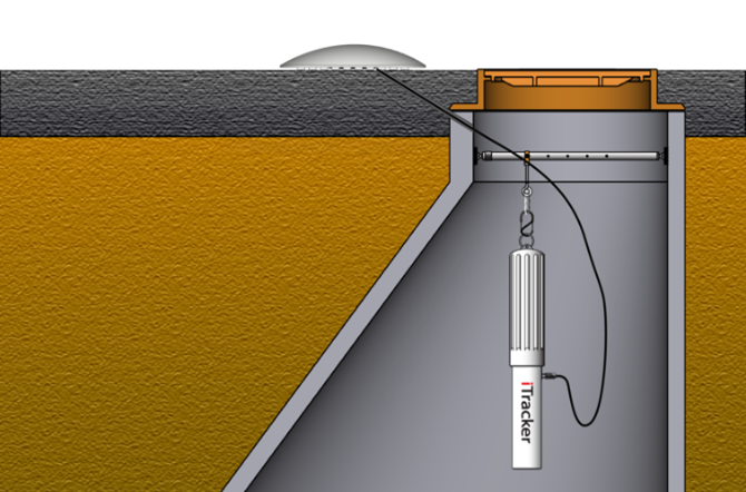 Cellular-enabled iTrackers require the antenna to be properly positioned to receive wireless signals. The provided Roadmarker antenna is a D.O.T. grade, omni-directional cellular antenna that can be installed above the manhole lid.