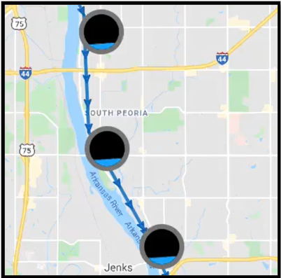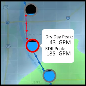 Once the date is selected, click on the Play button to initiate the animation. Remember: You can increase the viewing speed of the animation. The animation will load, and you will see the map animate with changing levels from iTracker manholes along with weather event.